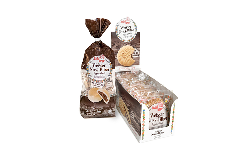 Die Appenzeller sind stolz auf ihre Traditionen. Eine besonders schmackhafte sind die feinen Bärli-Biber. Sehr beliebt sind in Appenzell aber auch die «Landsgmeends-Chreempfli», eine süsse Backspezialität, welche seit fast zweihundert Jahren im Frühjahr zur Landsgemeindezeit genascht wird. Die Bäcker-Familie Bischofberger hat das alte Rezept des «Weisser Biber» mit Haselnussfüllung und dem typischen Modelabdruck aufgenommen und weiter verfeinert. So entstand in der Backstube in Weissbad der «Weisse Nuss-Biber», ein Biber ohne Bienenhonig, mit weissem statt braunem Teig, mit dunkler Haselnuss- anstelle der hellen Mandelfüllung. Feine Appenzeller Butter sorgt für den unvergleichlichen Geschmack. Wie beim Bärli-Biber trägt auch der «Weisse Nuss-Biber» einen aufgeprägten Appenzeller Bär als Qualitäts- und Erkennungsmerkmal.